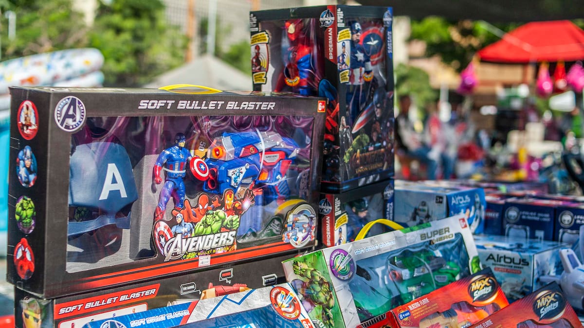 'Es sorprendente que en esta ocasión vienen preguntando más por juguetes temáticos. Esos que surgen a partir de lo que impone la industria de la televisión y el cine. Las niñas quieren los patines de Soy Luna y los niños buscan los muñecos de Avengers', afirma Eimer Gómez, comerciante de la Feria del Juguete.