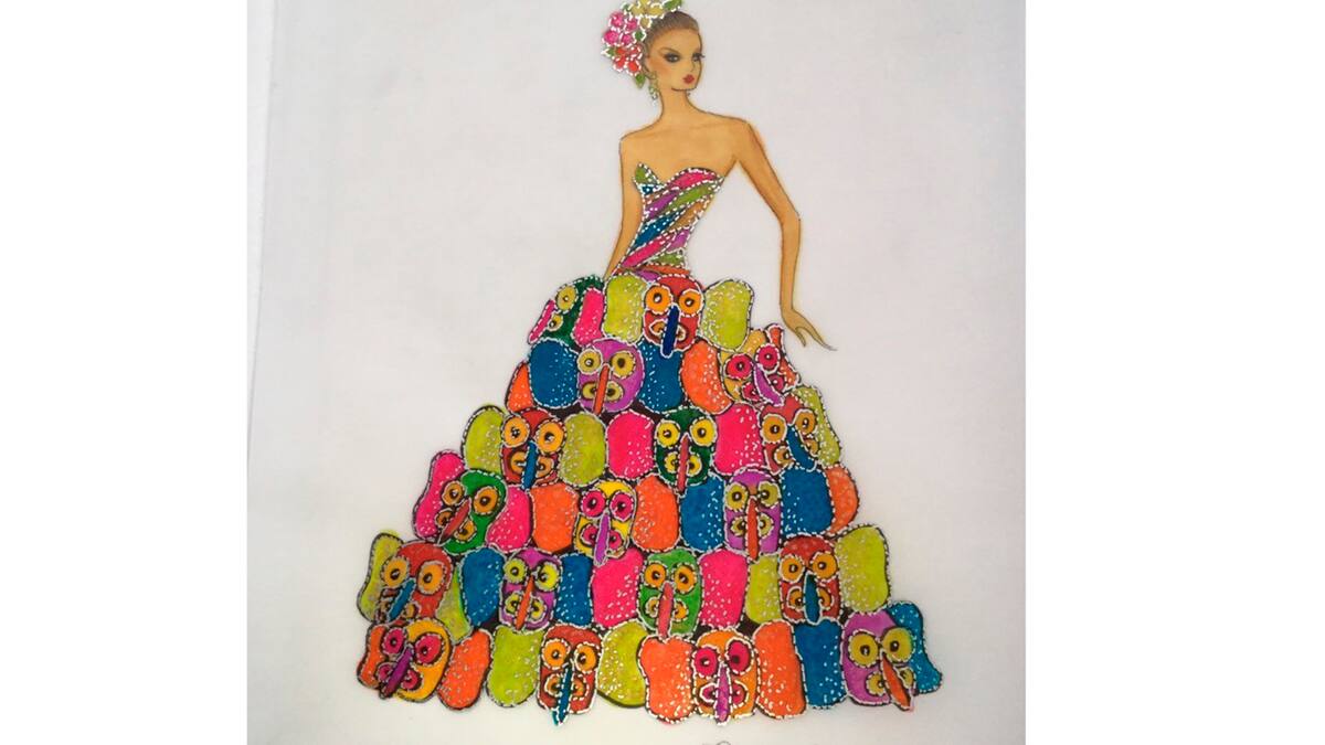 La ejecución del artístico estampado de la falda, que simboliza al sombrero vueltiao, es de la cartagenera y experta en ese tipo de trabajos textileros María Camacho.