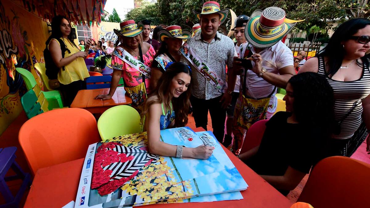 La reina lanzó su afiche de Carnaval ayer. La soberana lucía el vestido de cañaflecha y flores de amero con el que recibió el decreto de su reinado por parte del alcalde Alejandro Char.