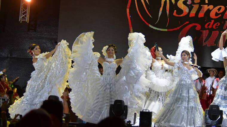 Con un movimiento de cadera, propio del coqueteo que caracteriza a la cumbia, las aspirantes danzaron para los asistentes. Las jóvenes lucieron trajes de fantasía en tonos blancos para honrar la memoria de Carlos Suárez Pereira, fundador del Sirenato de la Cumbia.