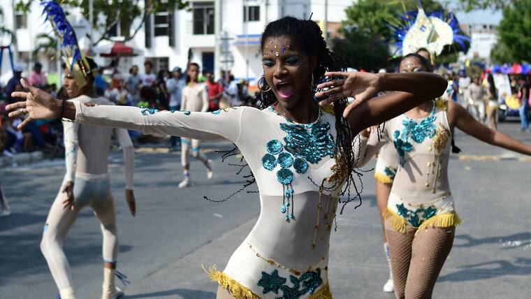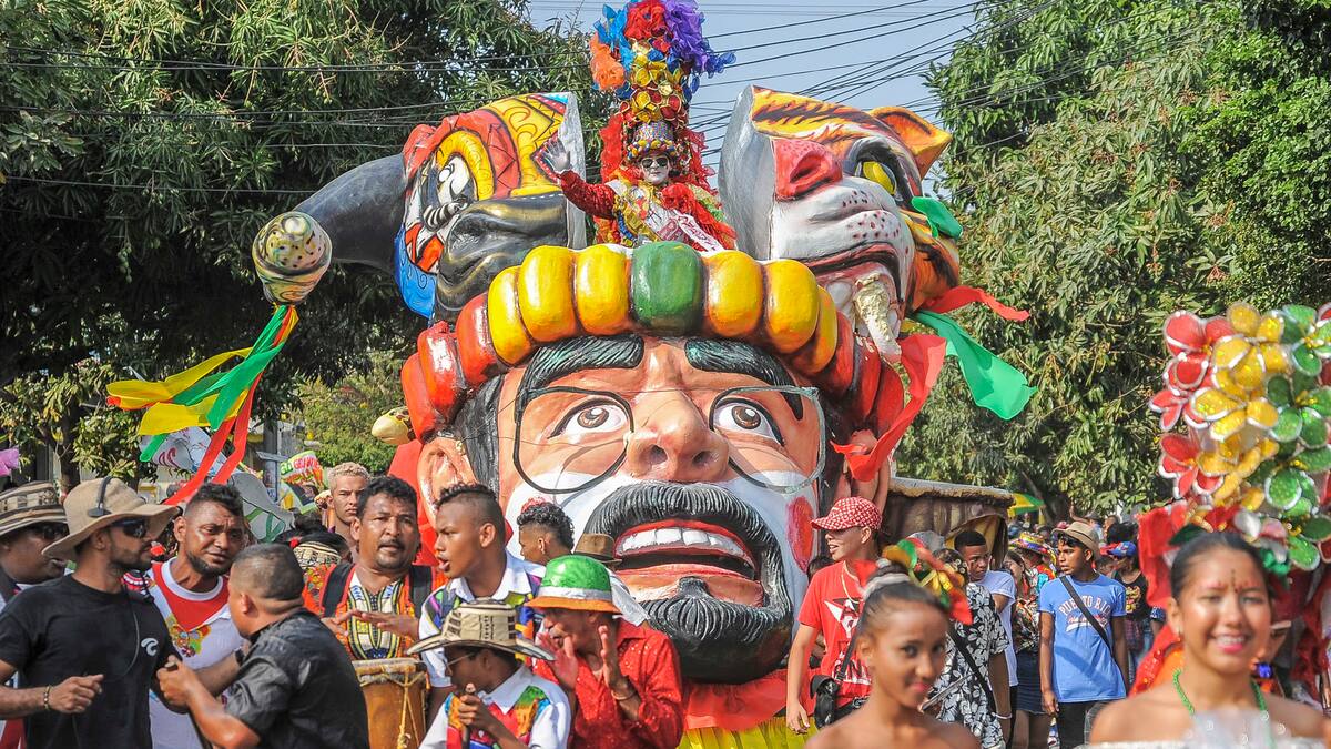 Subida en una carroza decorada con un enorme congo y dos máscaras de toritos, la reina del Carnaval 2019, Carolina Segebre Abudinen, contagió con su alegría a los habitantes de esta localidad.