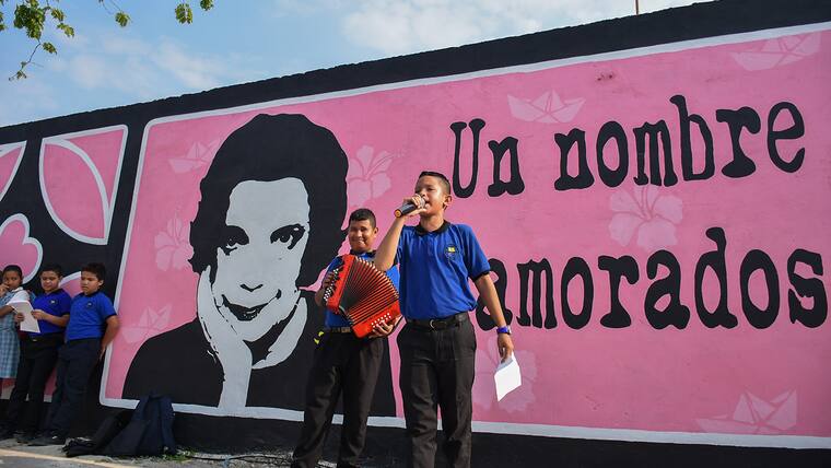 Frente al mural pintado en su honor en una pared de la carrera 50 con calle 40, donde se lee un fragmento de su poema Romance de Barranquilla, junto al rostro de la mujer sobre un fondo rosado, se reunieron funcionarios públicos, estudiantes y ciudadanos para leer algunos de los poemas más recordados de Meira.