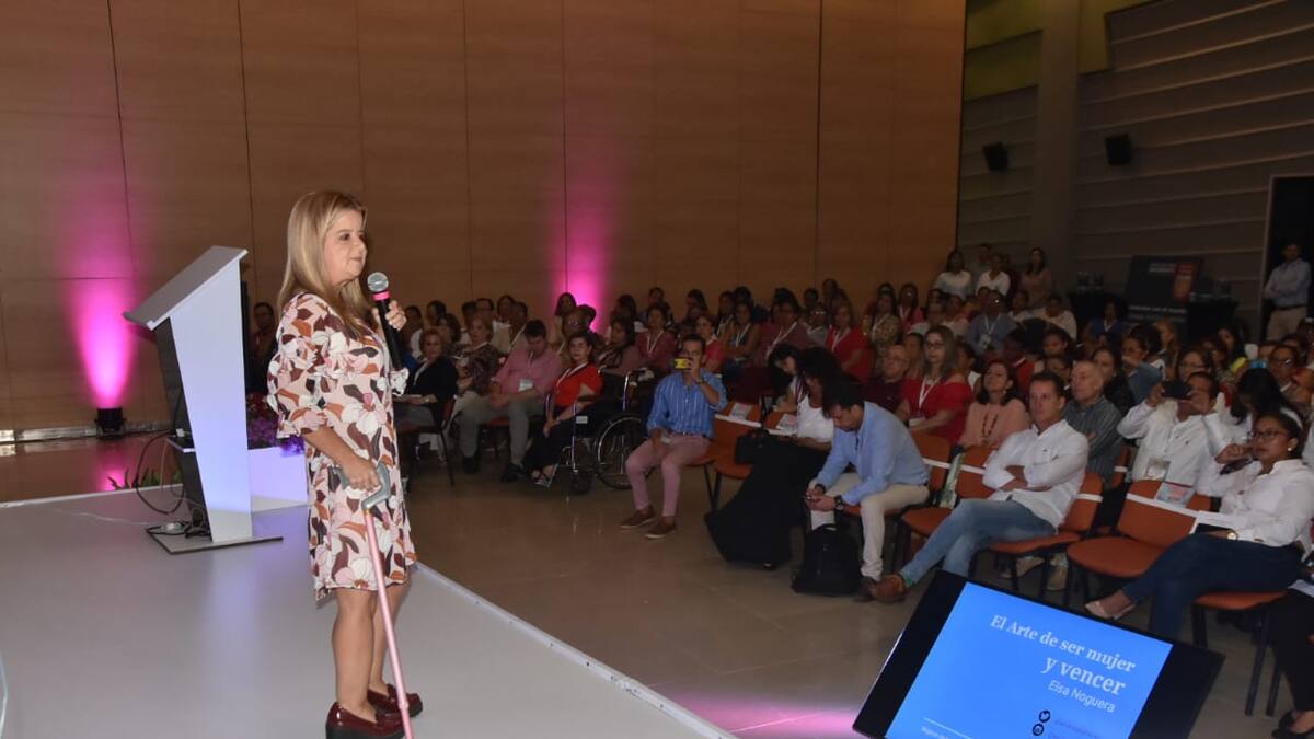 A través de historias, anécdotas y mensajes en su participación, llamada ‘El arte de ser mujer y vencer’, subió a la tarima del Centro de Convenciones Combarranquilla Country acompañada de un bastón rosado y entregó lo que para ella son las claves.