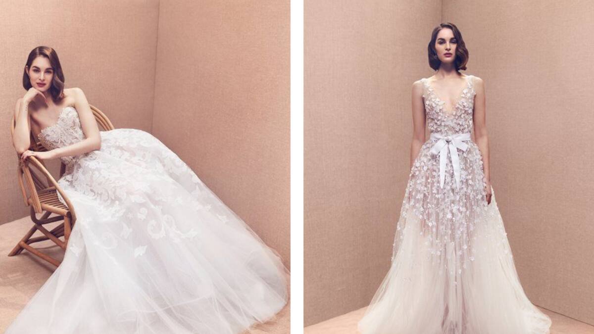 Los drapeados y las flores, algunas sobre tules y transparencias, protagonizan la propuesta de la firma, que bajo la batuta creativa de Laura Kim, de origen coreano, y Fernando García, dominicano de madre española, mantiene su glamur, romanticismo y elegancia característicos y asume las exigencias de la novia millennial.