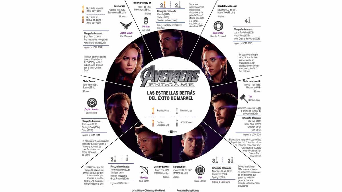 Contiene la relación de los siete actores que representan a los personajes principales de ‘Avengers: Endgame’, última película de la tercera fase del Universo Cinematográfico Marvel que se estrenará este 24 de abril.