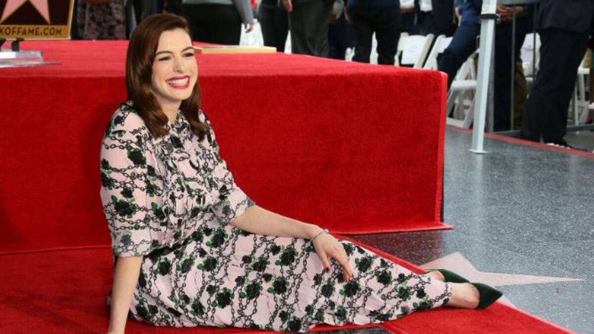 La ganadora del Óscar Anne Hathaway recibió este jueves una estrella en el Paseo de la fama de Hollywood.