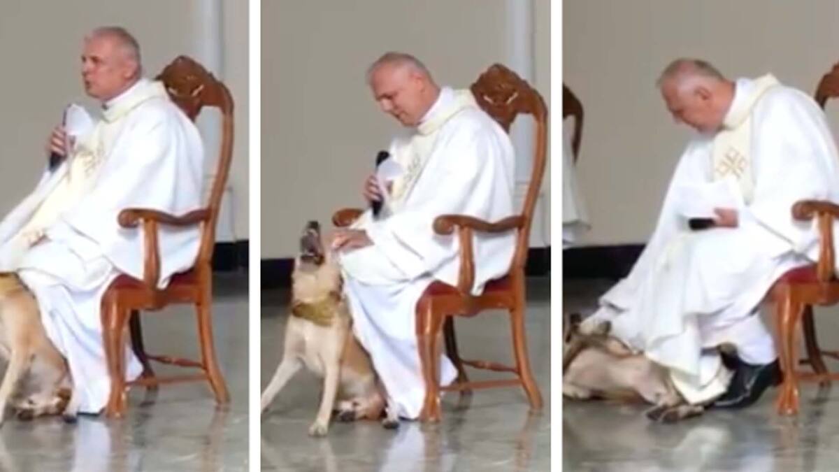 El hecho ocurrió en una parroquia de Brasil, donde un canino ingresó a la iglesia y se postró frente al sacerdote que oficiaba la misa. En el video se observa al presbítero sentado cantando una alabanza mientas que el perro intenta morderle la túnica.