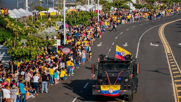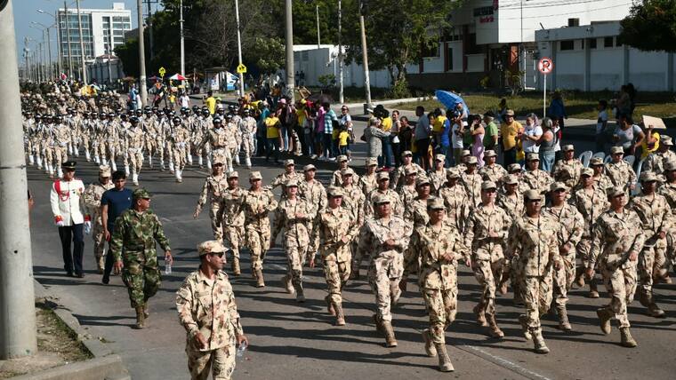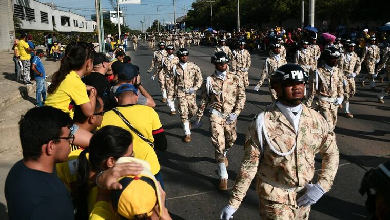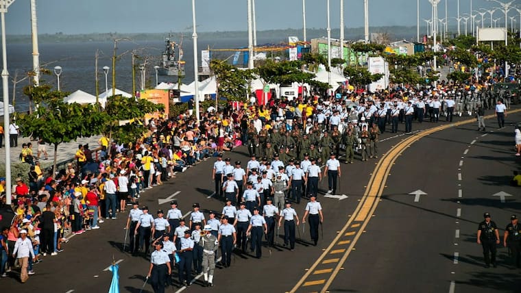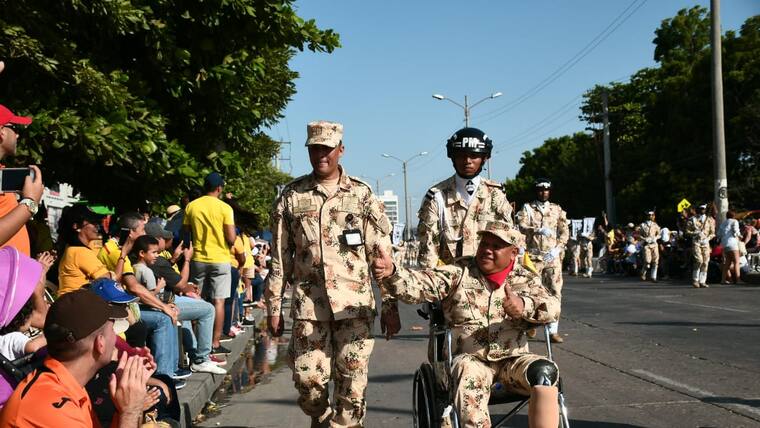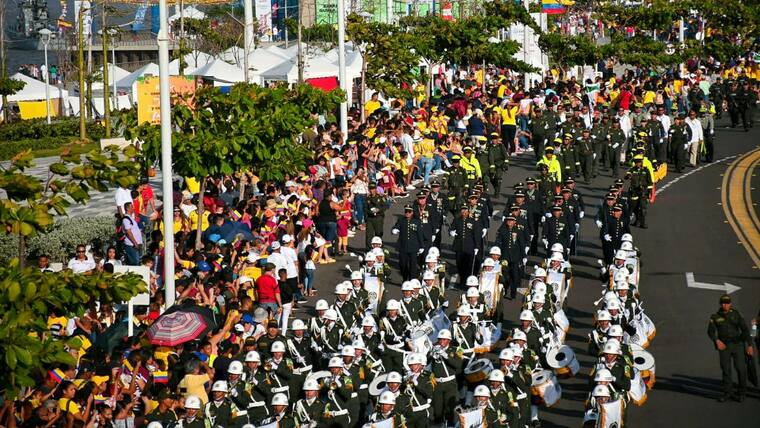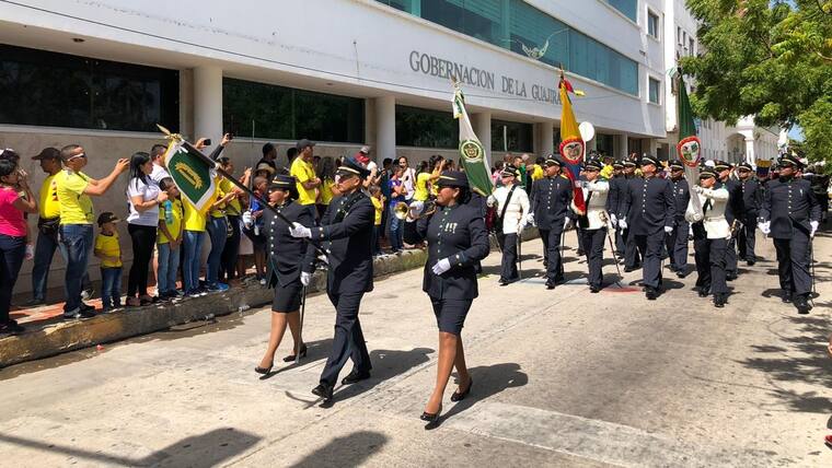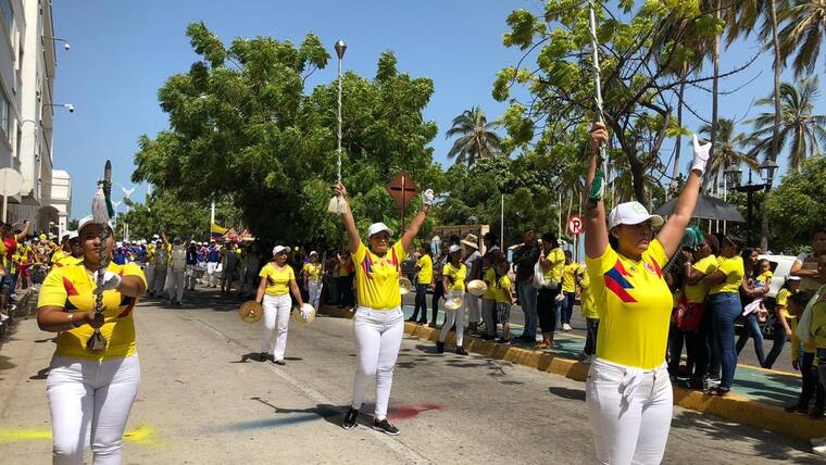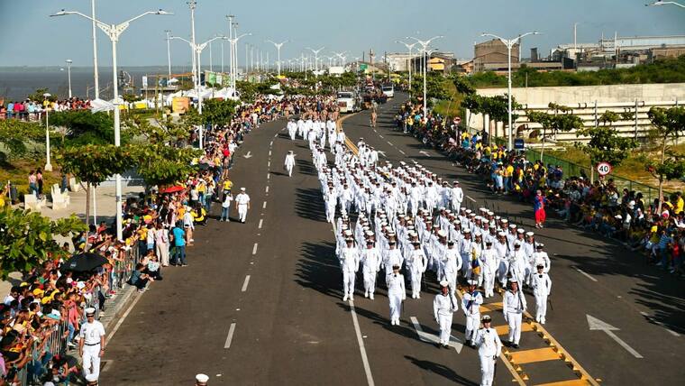 En la tarde de ayer Barranquilla se vistió de amarillo, azul y rojo en la celebración del Día de la Independencia. El desfile, que partió desde la Base Naval y culminó en el Malécon Puerta de Oro, tuvo su inicio a las 3:30 p.m., estuvo liderado por el coronel Juan Francisco Mosquera, del Comando Aéreo de Combate N° 3; el comandante de la Segunda Brigada del Ejercito, Juan Carlos Aparicio; el subdirector de la Escuela Naval de Suboficiales ARC Barranquilla, capitán de navío Joaquín Adolfo Urrego; el comandante de la Policía Metropolitana de Barranquilla, brigadier general Mariano Botero Coy; el secretario de Cultura distrital, Juan José Jaramillo, entre otras autoridades y miembros de la fuerza pública.