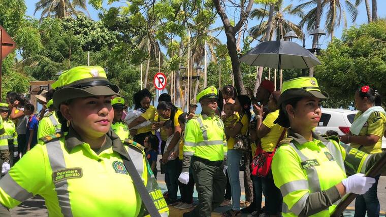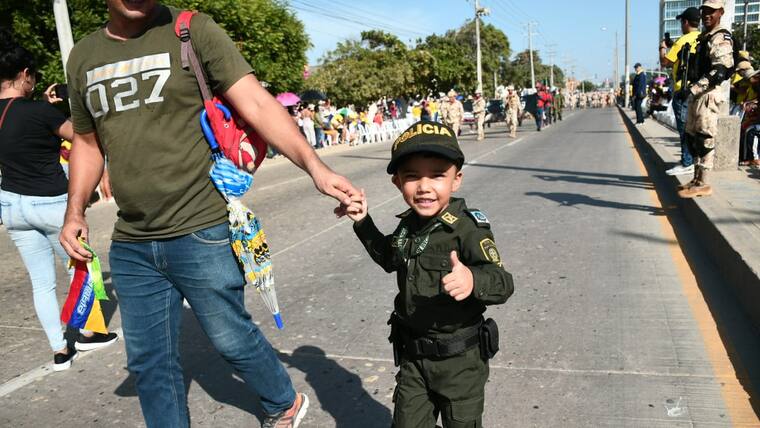 Kylie Rojas, de 4 años, vestía un uniforme de la Policía, porque cuando sea grande quiere ser como su papá. La pequeña, que saltaba cuando pasaban los uniformados, hace varios meses no ve a su padre porque fue trasladado a Curumaní, Cesar.