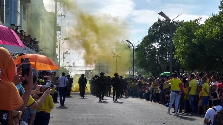 Miembros de diferentes escuadrones del Ejército, oficiales navales, bomberos, policías, defensa civil, entre otros grupos, se unieron para dar una muestra de 'amor a la patria y deber'.