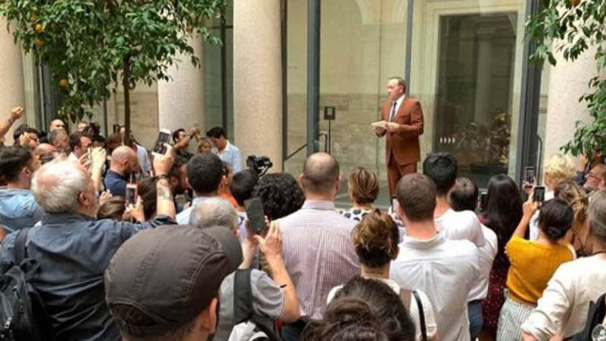 'Kevin Spacey eligió Roma, con sigilo, en secreto absoluto, sin anunciarse, aceptando leer delante de un puñado de espectadores una poesía de Gabriele Tinti', un poeta italiano contemporáneo, 'que hizo 'hablar' a la estatua', añadió.