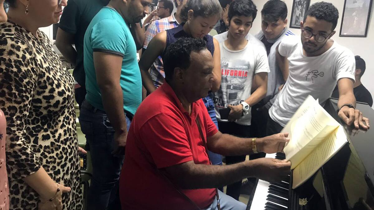 'La música es para divertirnos, no para estar tensos', dijo el músico cubano sentado frente al piano, a los jóvenes que lo miraban con timidez.