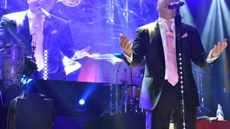 A las 9:30 de la noche ya estaban los músicos en tarima, mientras el cantante hacía su aparición la orquesta tocó un intro con las melodías de los éxitos más recordados del artista, el púbico calentaba sus voces para recibir a Cristian.