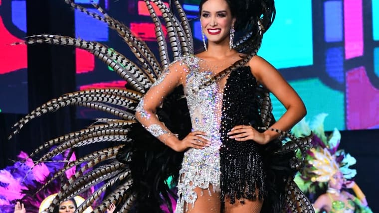 La soberana hizo su primera aparición con un traje de baño enterizo de color negro. La elegancia de su caminar felino fue acompasada por el sonido del saxofón mientras la Banda interpretaba un instrumental New York, New York, que transportó a los asistentes a los años dorados del jazz estadounidense en la voz de Frank Sinatra.