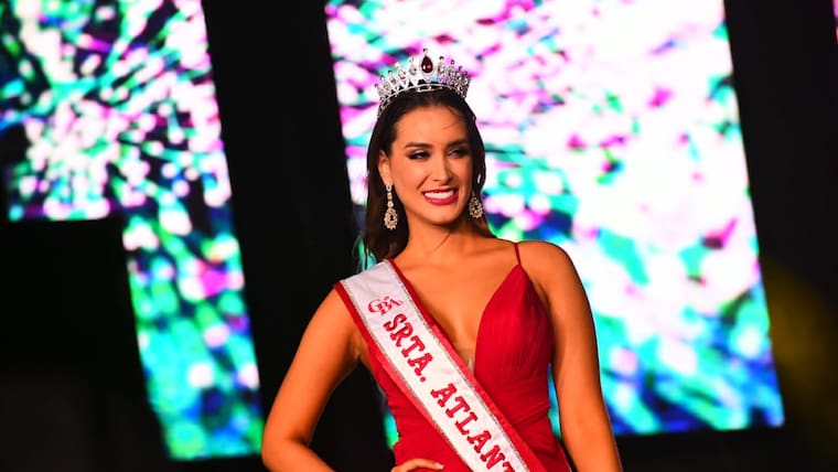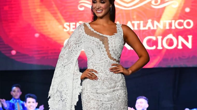 Claudette, de 23 años, comunicadora social egresada de la Universidad del Norte, recibió de manos de la señorita Atlántico 2018, María Alejandra Vengoechea, la brillante tiara de plata y Swarovski, diseñada por la joyería Royal Art, que se inspiró para su creación en las coronas de la realeza británica.