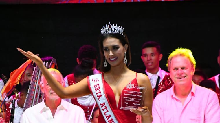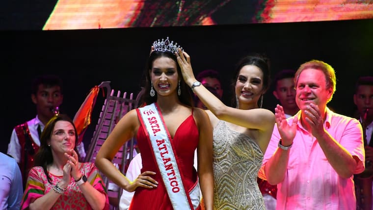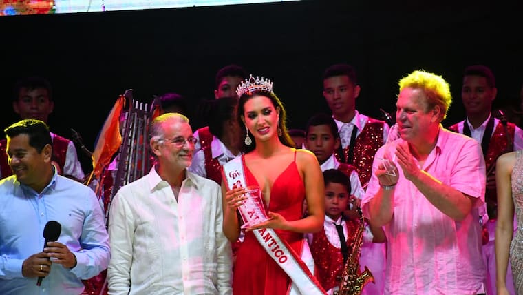 Ramón Jesurúm, representante del Comité de Belleza del Atlántico, el gobernador del departamento, Eduardo Verano De la Rosa, el alcalde de Malambo, Efraín Bello y la alta consejera Presidencial para las Regiones, Karen Abudinen acompañaron el acto oficial de entrega de la banda y la corona con la que la soberana Claudette Abuchaibe representará al Atlántico en el Concurso Nacional de Belleza en Cartagena.