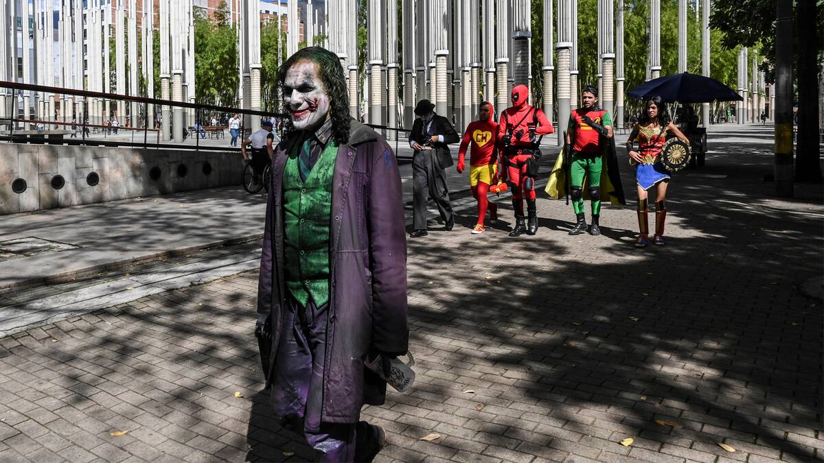 De la nada suena la risotada diabólica. Es el Guasón desencajado, merodeando a transeúntes. Johnny Tales, un actor que emigró de Venezuela tras ser atacado por criminales de verdad, sobrevive en las calles de Medellín con su representación del taquillero antihéroe.