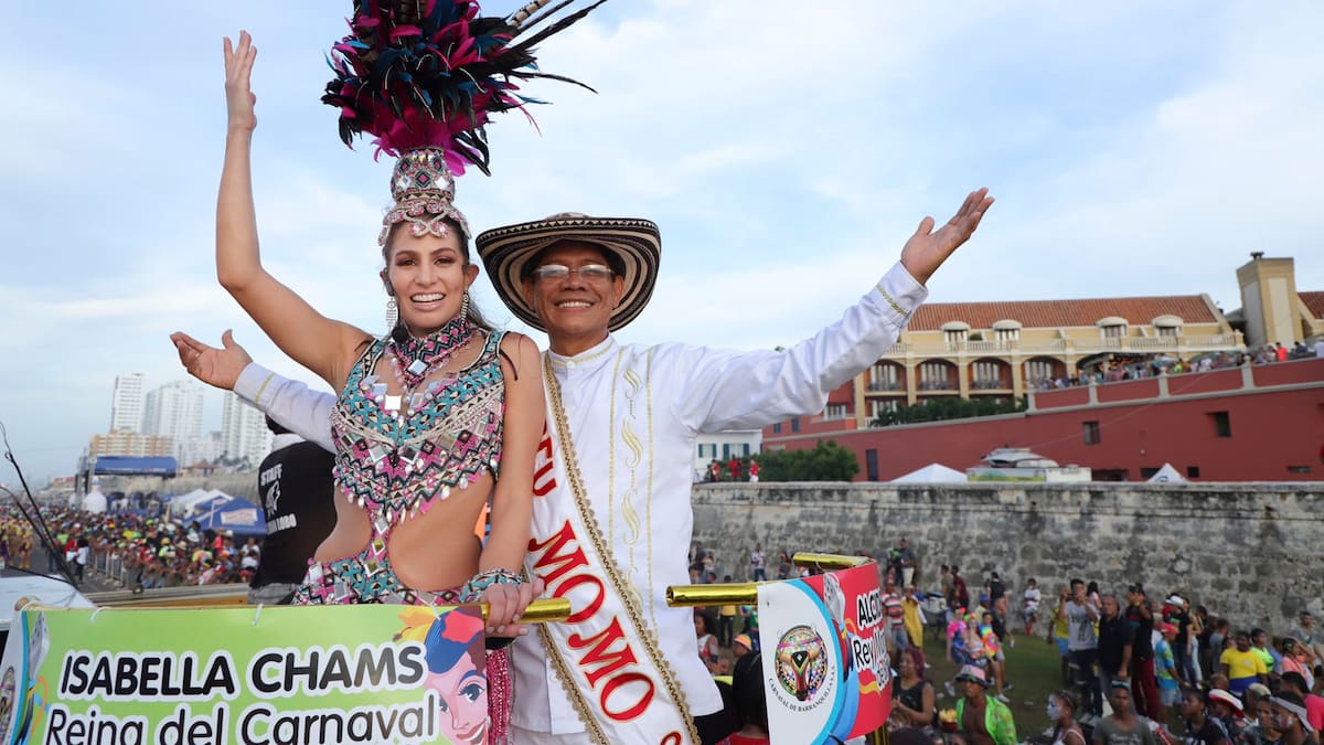 Los reyes del Carnaval de Barranquilla 2020, Isabella Chams y Alcides Romero, desfilaron por la Avenida Santander con el sonido del picó ‘El Gran Lobo’. Las marimondas de Barrio Abajo, la Banda Distrital de las Casas de Cultura y el Garabato de la Universidad Libre completaron la muestra cultural que contagió a los cartageneros con la alegría típica de las carnestolendas.