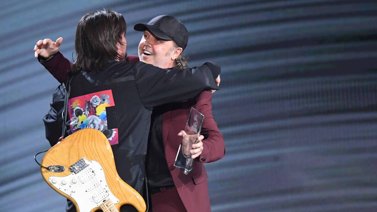 Juanes recibió el reconocimiento de ‘Persona del Año 2019’ en la gala de los Grammy Latino, de la mano de Lars Ulrich, el baterista del grupo Metallica. “Una de las razones por las que hago música es por ustedes (Metallica). Hace 30 años estaba en Medellín escuchando su música, ustedes cambiaron mi vida”, dijo el paisa luego de recibir el premio.