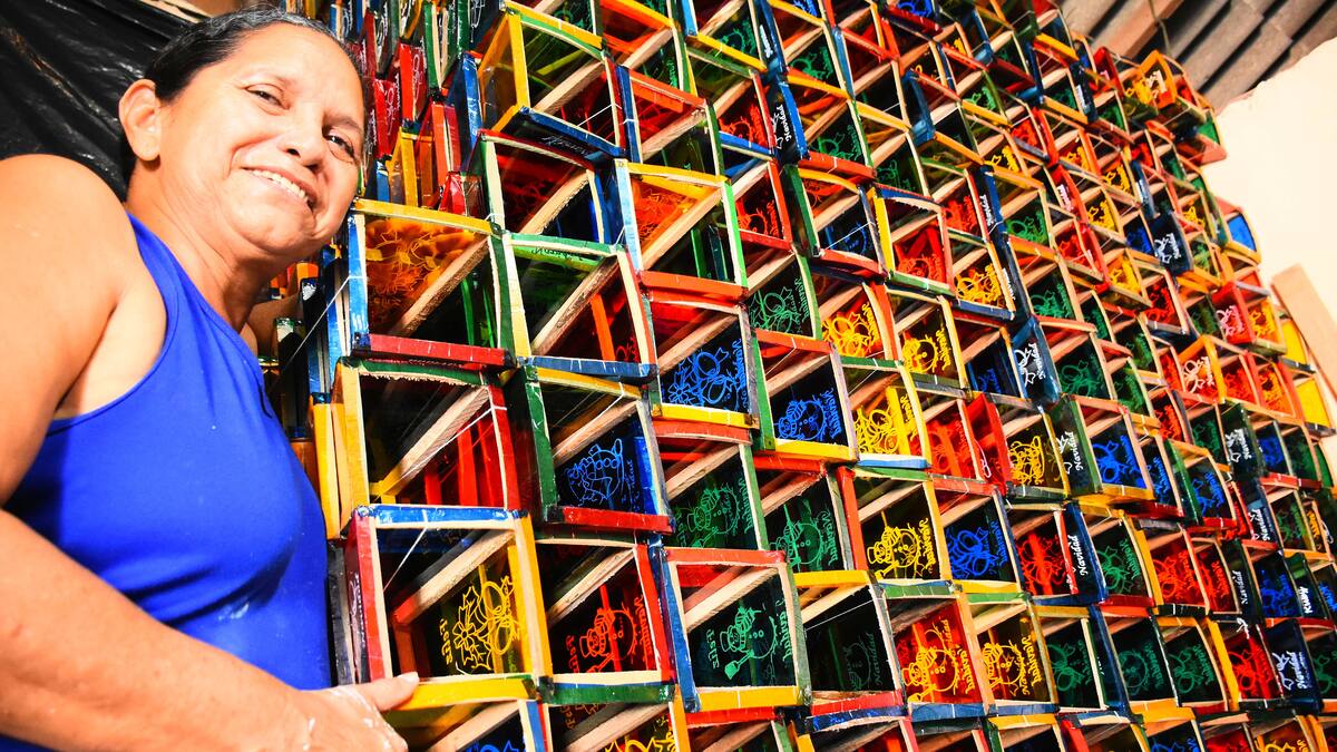 'Inicialmente sacaba la madera de las cajas de tomate y de a poco fui perfeccionando la técnica, eso me permitió obtener buenos recursos y posteriormente construir mi taller', dijo a EL HERALDO, mientras observaba a uno de sus trabajadores organizar una hilera de estos trapecios forrados.
