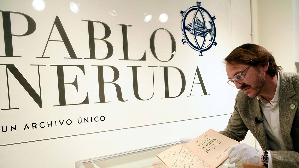 Entre las piezas destacan numerosas primeras ediciones de obras de Neruda, fotografías, caligramas y correspondencia, libros de artista con ilustraciones de Diego Rivera, Pablo Picasso o Joan Miró o ejemplares con dedicatorias al expresidente chileno Salvador Allende o los Nobeles Miguel Ángel Asturias o Gabriel García Márquez.