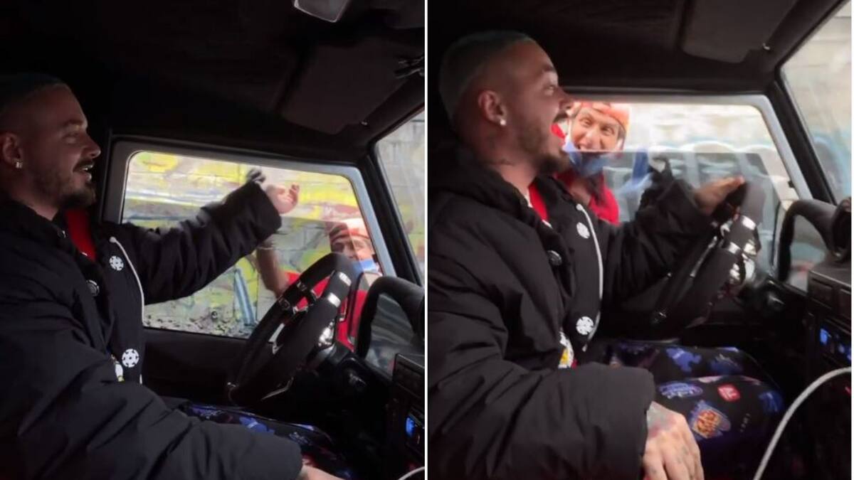 En la publicación, se ve a un hombre que acaba de ayudar emocionado expresándole: '¡Usted es Maluma!', a lo que el artista le contesta: 'No, J Balvin'. A continuación, el hombre se percata de su error, y sosteniéndose de uno de los bordes del automóvil de Balvin le pide que le de la mano emocionado. Por último, el intérprete de 'Arcoiris' entre risas le dice que tenga cuidado, ya que el carro está en marcha.