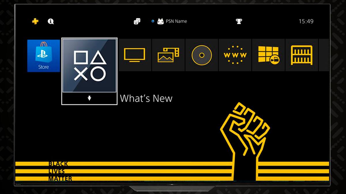 Este lunes la compañía Sony lanzó de manera gratuita un nuevo tema para la PlayStation 4 como apoyo al movimiento contra el racismo Black Lives Matter. El diseño es totalmente negro, cuenta con unas líneas amarillas y un puño en alto que es un símbolo de la lucha contra el racismo.