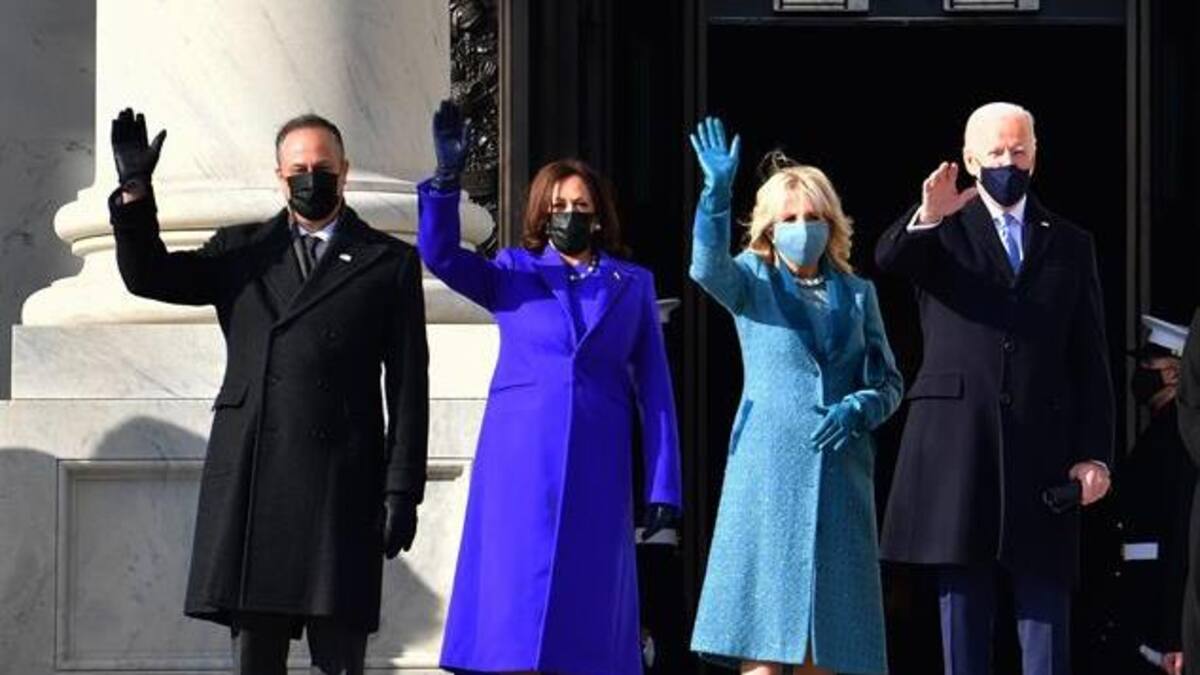 Así, Joe Biden, al ser un evento de día, ha hecho su juramento con un traje azul marino, camisa blanca y corbata celeste, y se protegía del frío con un abrigo marino, prendas casi idénticas a las utilizadas por otros presidentes, como Barack Obama o Bill Clinton, en sus tomas de posesión.