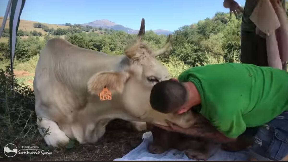 Con los ojos llenos de lágrimas al saber que no podría sobrevivir, la vaca llenó de besos al español, quien sí logró rescatar la vida de su cría, llamada Savi.