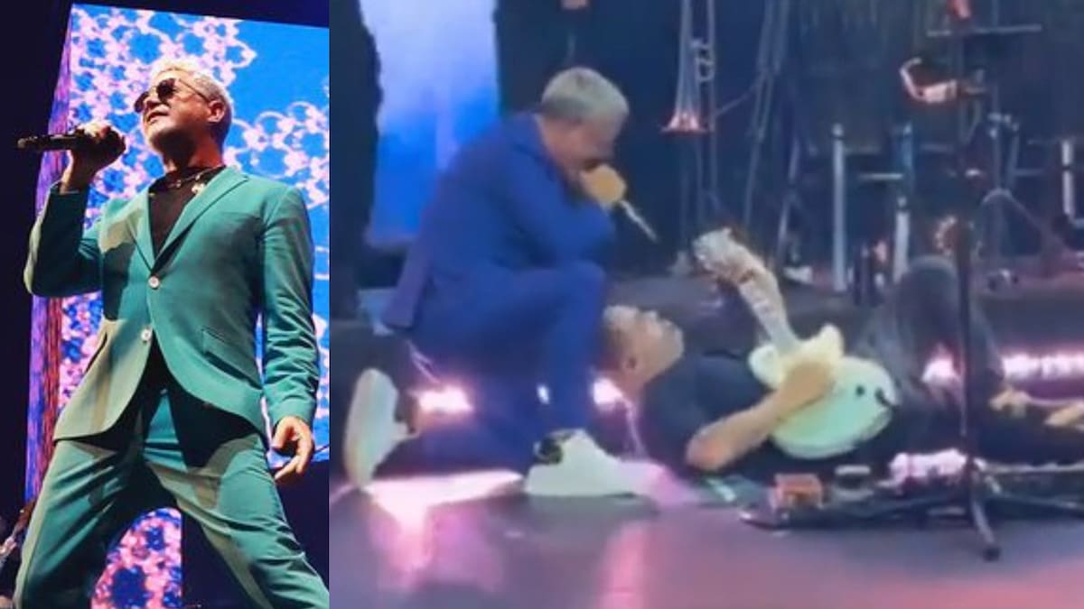 De inmediato Sanz le extendió la mano para poder ayudarlo; sin embargo, este se resistió y prefirió continuar el show desde el suelo.