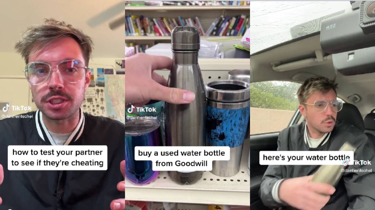 '¿Cómo probar a tu pareja para ver si te está engañando? Compre una botella de agua usada de Goodwill que, teóricamente, podría pertenecer a cualquiera', comienza explicando en su vídeo el usuario.
