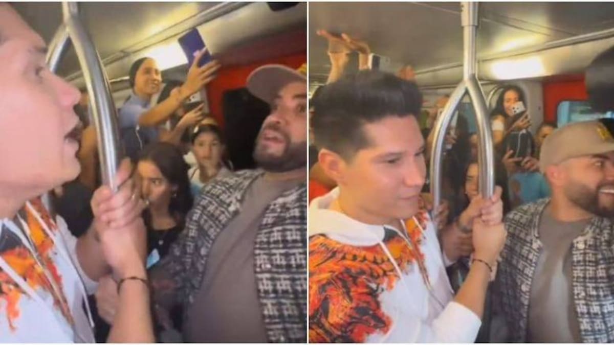 Cuando ingresaron al vagón en la Línea 1, varios pasajeros se encontraban incrédulos ante lo que estaban viendo en ese momento. Después de un fervoroso recibimiento por parte de las personas que se encontraban en el transporte público, el dúo empezó a cantar uno de sus temas, mientras los presentes coreaban sus canciones.