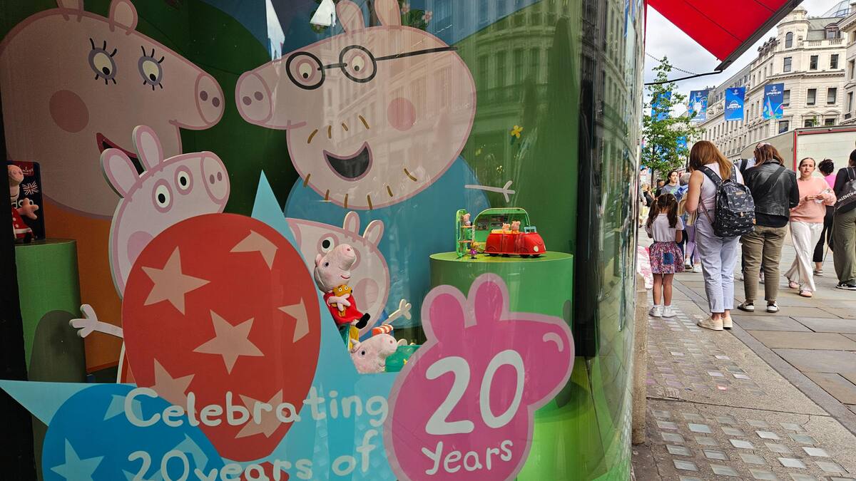 Asimismo, la juguetería británica Hamleys quiso recordar en su escaparate de la tienda londinense de Regent Street el 20 aniversario con productos inspirados en la afamada familia de cerditos, cuya serie se emite en 180 países y se ha doblado a 40 idiomas.