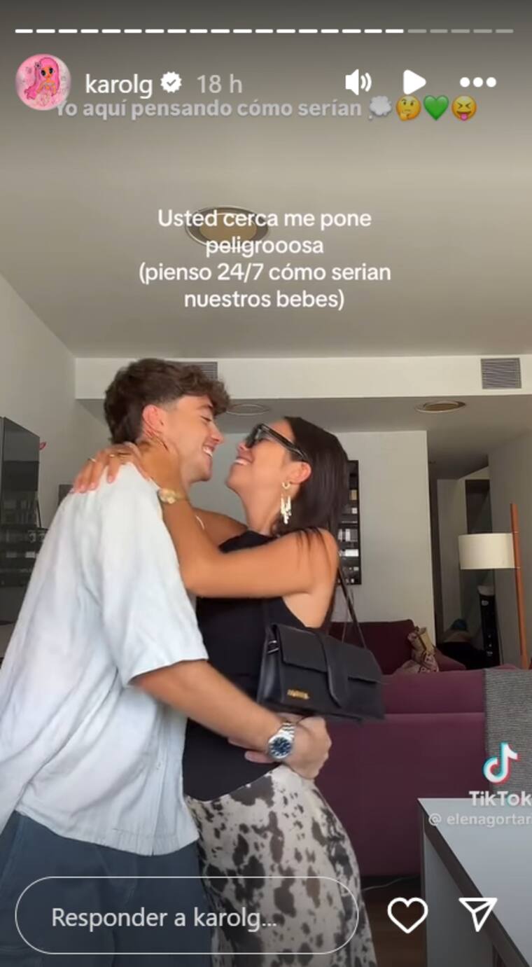 Todo normal hasta ahí. Después de varios videos de TikTok que compartió, uno llamó la atención de los internautas, pues el video tenía un título que decía “pienso 24/7 cómo serían nuestros bebés”, al momento que la pareja bailaba al ritmo del merengue.