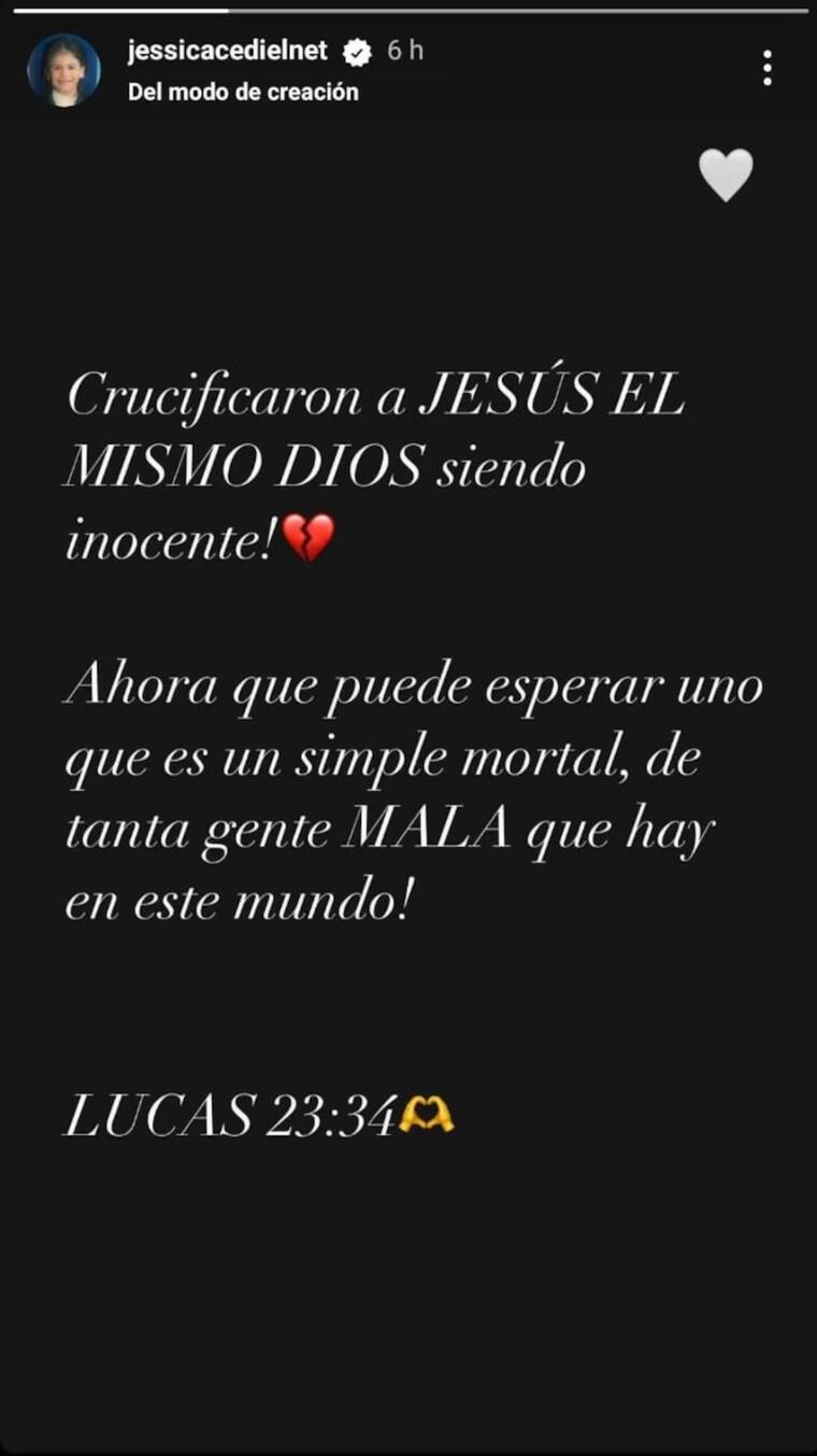 “Crucificaron a Jesús el mismo Dios siendo inocente, ahora que puede esperar uno que es uno simple mortal, de tanta gente mala que hay en este mundo”, escribió en una historia de Instagram.