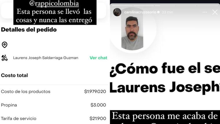 “Esta persona me acaba de robar en ‘Rappi Colombia’. Esta persona se llevó las cosas y nunca las entregó. Nunca los entregó, le tomó foto al edificio, la mandó y se fue”, escribió junto con el perfil del domiciliario.
