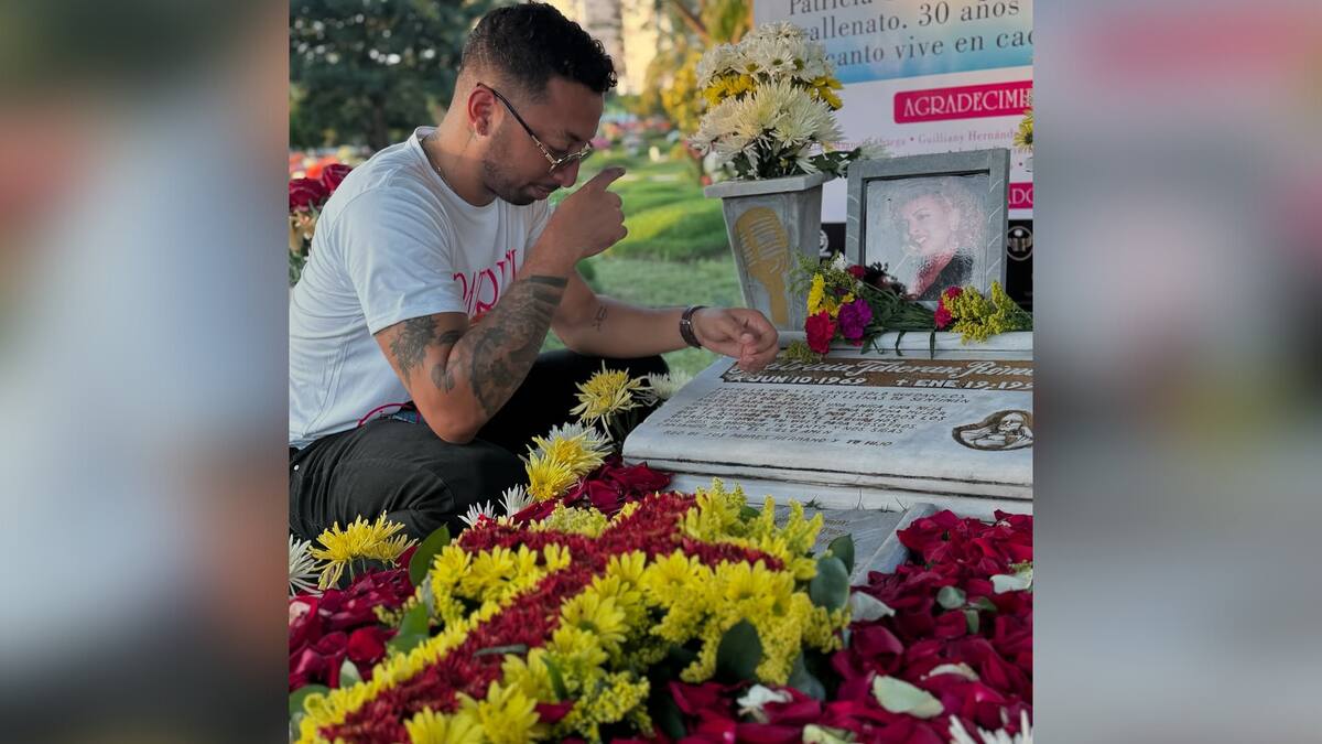 El cantante publicó una serie de imágenes en las que se ve junto a la tumba de su madre, acariciando su lápida y observando su fotografía, rodeada de hermosas flores.