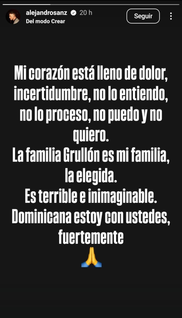“La familia Grullón es mi familia, la elegida. Es terrible e inimaginable. Dominicana estoy con ustedes fuertemente”, agregó.