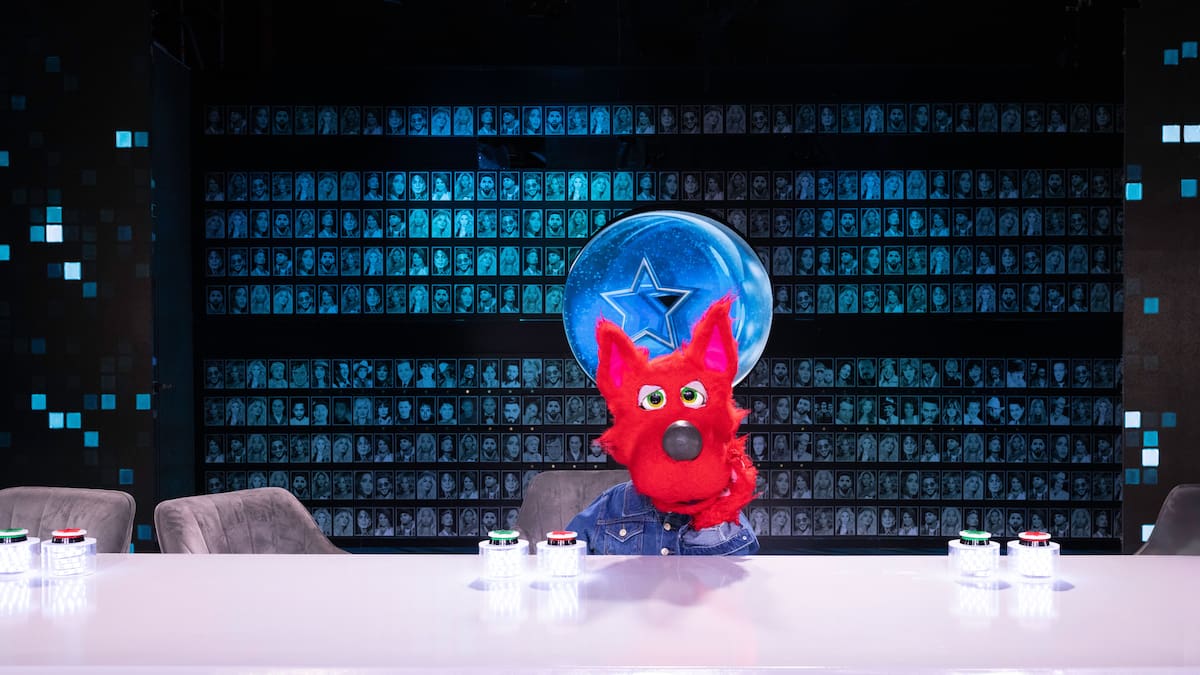 El lobo de pelaje rojo, quien está sentado junto a Amparo Grisales, Rey Ruiz y César Escola, es el cuarto jurado del programa, y hasta el momento ha sido la sensación por tus particulares recomendaciones.