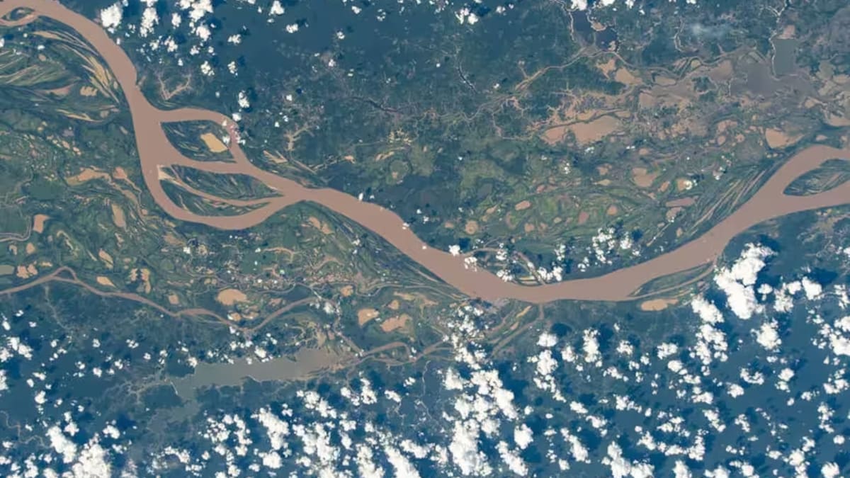 Un trazo de agua de dimensiones colosales atraviesa la selva más extensa del mundo. Así se ve el Amazonas desde el espacio, según las imágenes recientemente publicadas por la NASA, tomadas a bordo de la Estación Espacial Internacional durante distintas misiones.