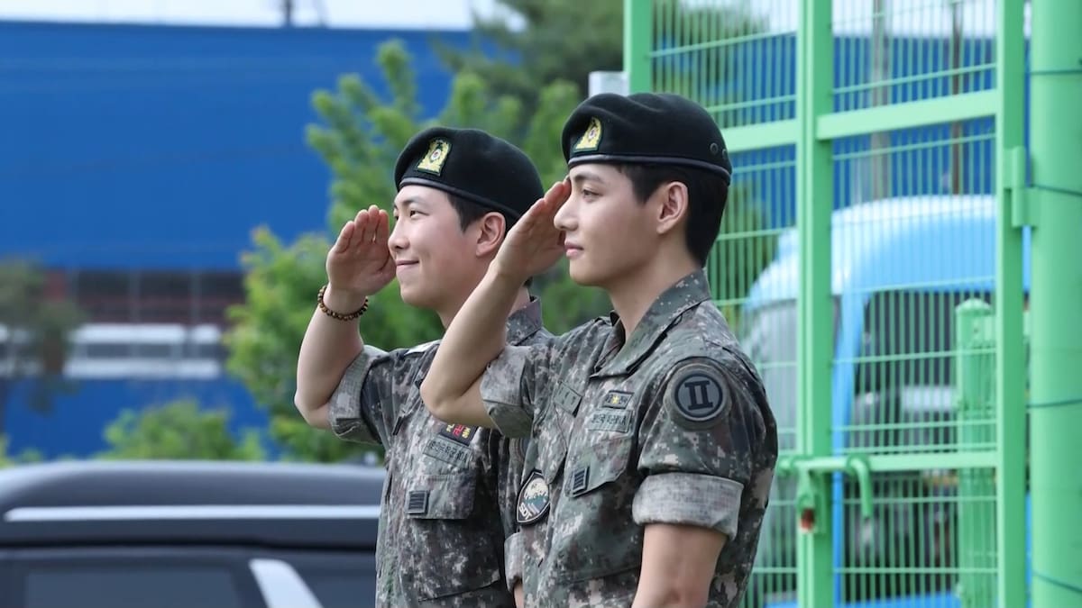 Ambos artistas se enlistaron en diciembre de 2023 como soldados activos: RM sirvió en la banda militar del Ejército y V en una unidad de misiones especiales bajo la Policía militar.
