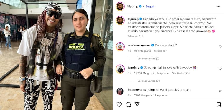 Lil Pump es un rapero estadounidense de 25 años que ha encendido las redes sociales al declararle su “amor” a una policía que vio en su reciente viaje a Colombia.