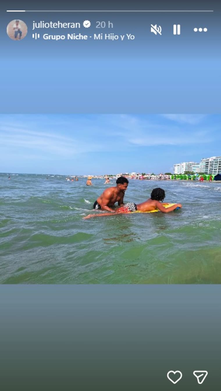 Luego, en sus historias, el pelotero también agregó una foto en sus historias de Instagram, donde se ve con el pequeño compartiendo en la playa y con la canción ‘Mi hijo y yo’ del Grupo Niche.