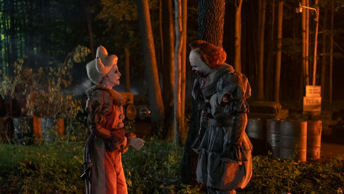 Brooke Palmer/HBOA diferencia de episodios anteriores, Pennywise actúa de forma frontal. Utiliza figuras de autoridad, espacios públicos y grupos de niños al mismo tiempo, demostrando que su poder ya no necesita el miedo individual: ahora controla el entorno entero.