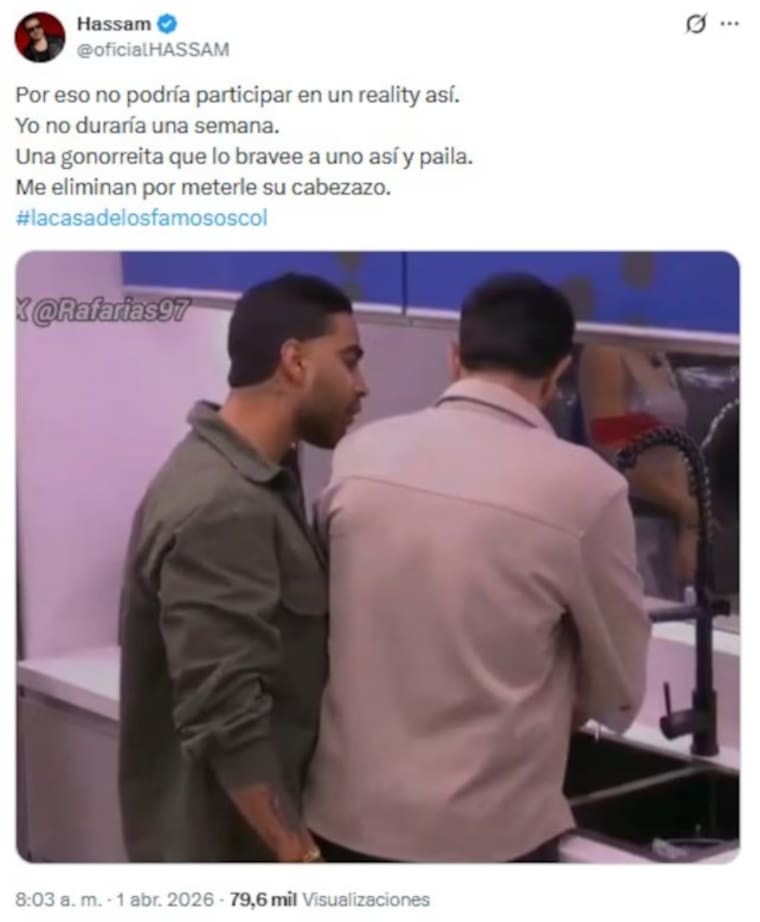 A través de su cuenta en X, Hassam aseguró que, aunque no conoce personalmente a Estrada, las actitudes de otros participantes han terminado favoreciendo su imagen dentro del reality.