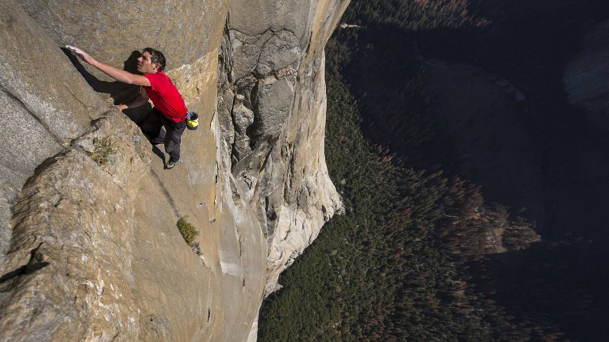 A veces son las yemas de los dedos en una grieta, o un pulgar en un hueco minúsculo. Para superar el paso del Boulder Problem, Honnold tiene que realizar una secuencia complicada de movimientos de brazos y piernas. En el entrenamiento, con cuerda, los repitió hasta la perfección. Esto no impide que un camarógrafo, mire hacia otro lado durante la maniobra.