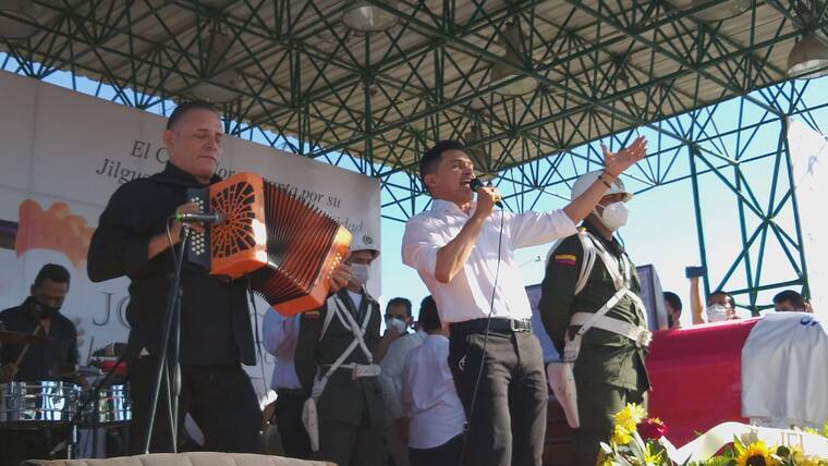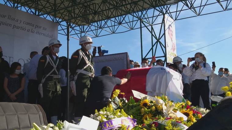 En su tierra natal desde la plaza Olaya Herrera se le da un último adiós al maestro Jorge Oñate González. Su familia, amigos y seguidores.