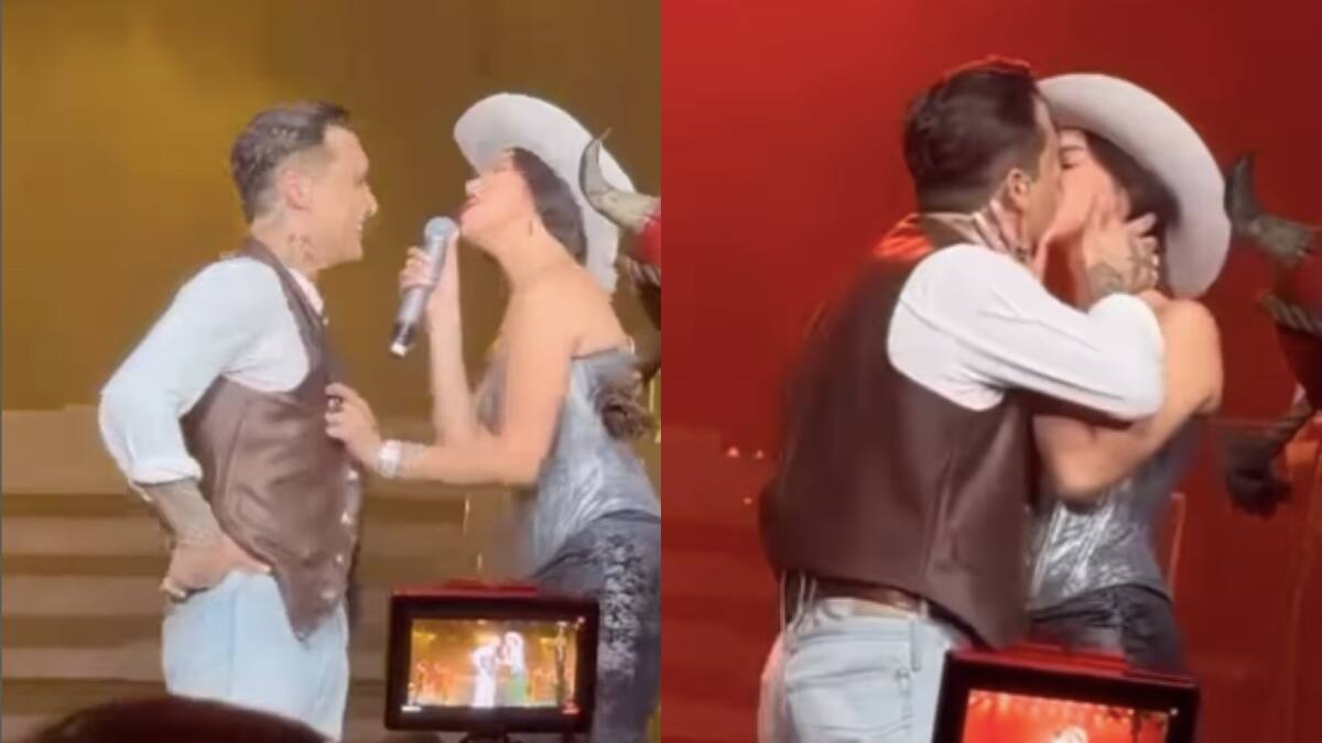 Durante su presentación, la pareja sorprendió a los asistentes sellando su interpretación con un romántico beso, que generó la ovación y aplausos del público.
