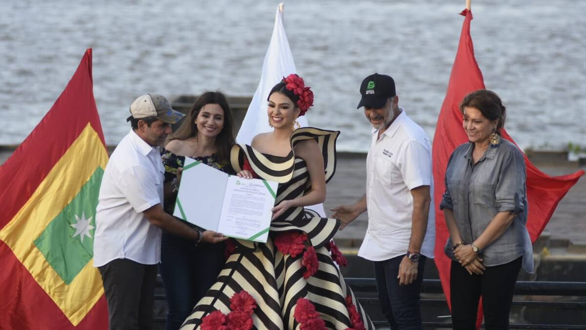 En medio de la música de la banda Distrital de Cultura y con la vista al río Magdalena desde el Gran Malecón del Río, Carolina Segebre recibió el decreto que la ratifica como reina del Carnaval 2019.