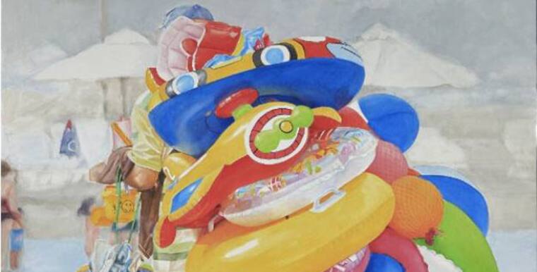 Hasta el 10 de mayo estará abierta la exposición, cuyas obras llenas de color y naturalidad dibujan palenqueras, vendedores de inflables y frutas para disfrutar al frente de las olas del mar Caribe.